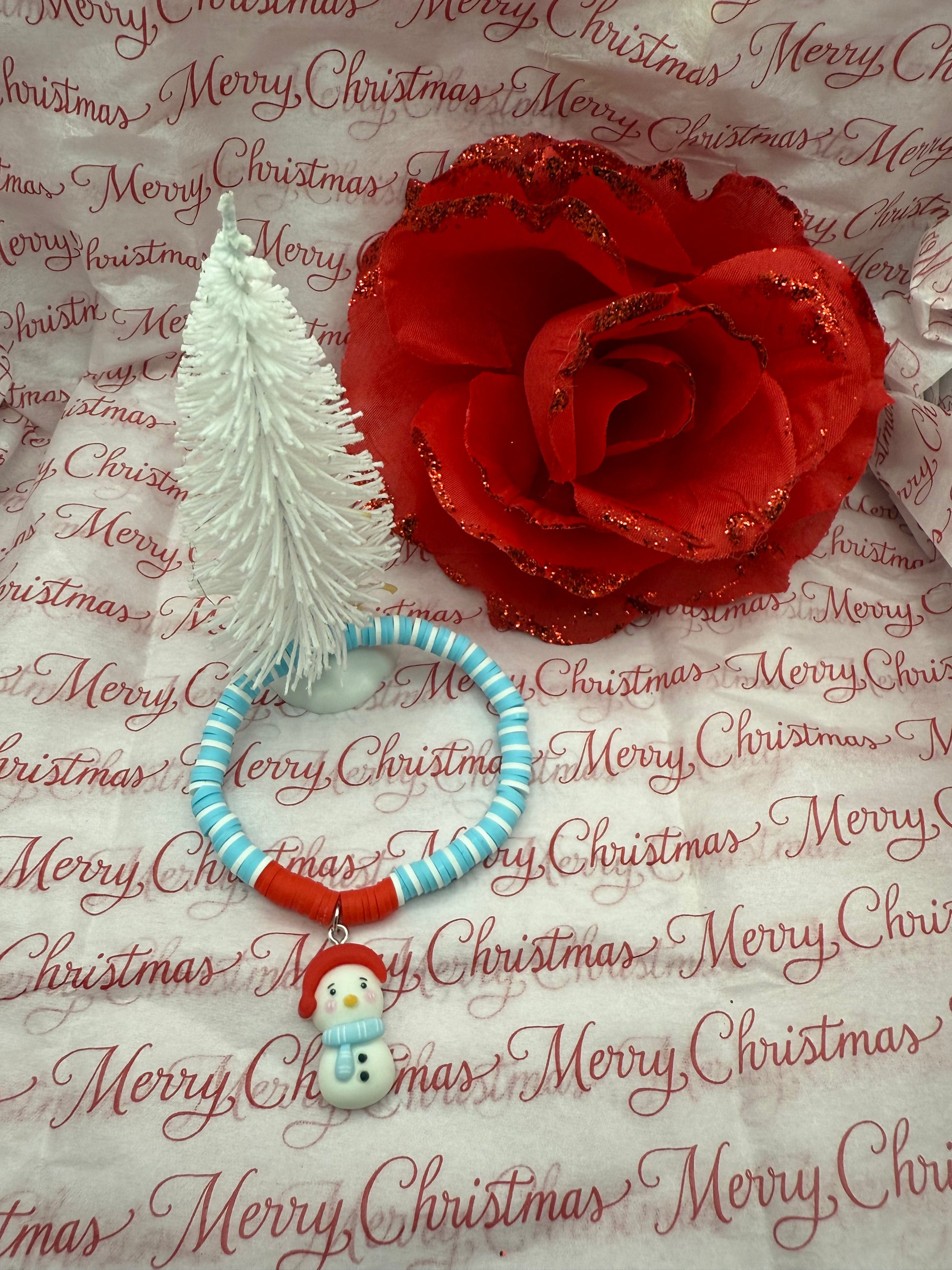 white/blue/red clay bead
