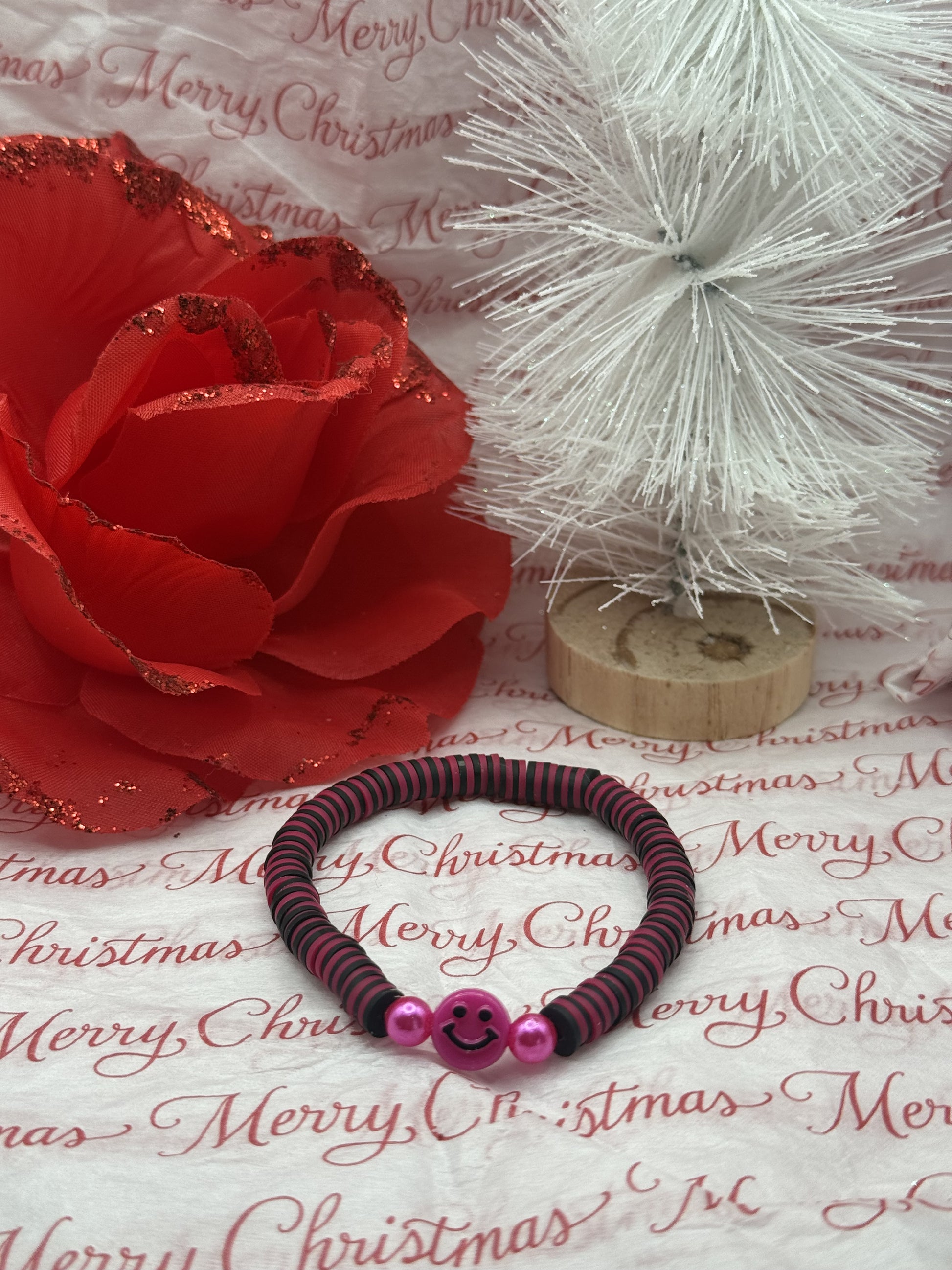 Clay beaded bracelet with smiley face